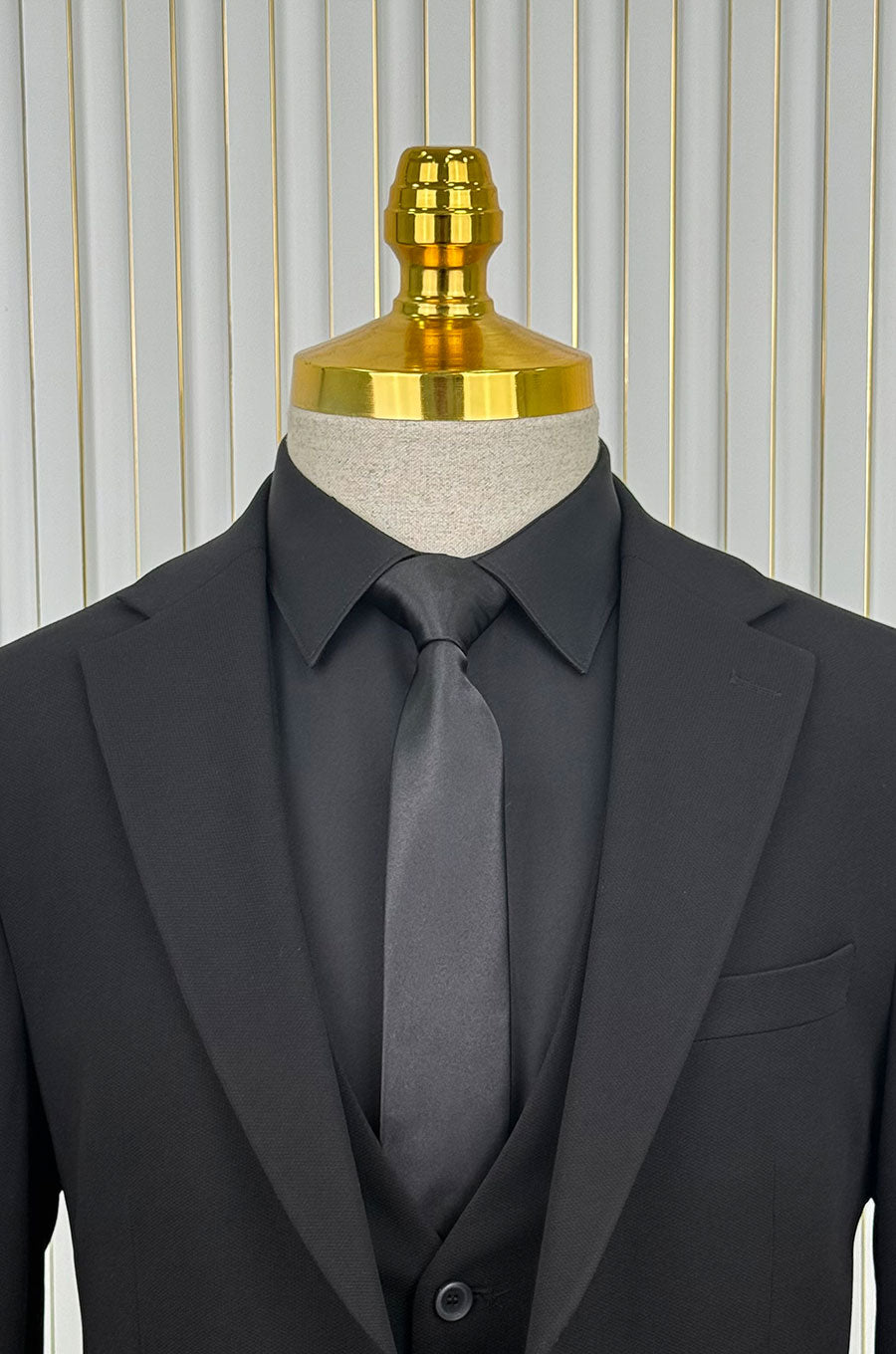 İtalyan stil slim fit ceket yelek pantolon takım elbise Siyah